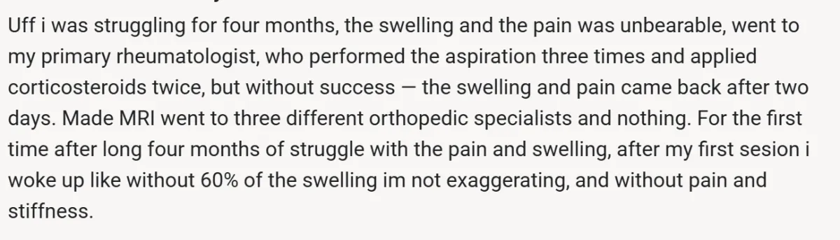 I couldn’t believe it, after everything I had tried, this was the first time my body finally felt peace.- Bonys Name